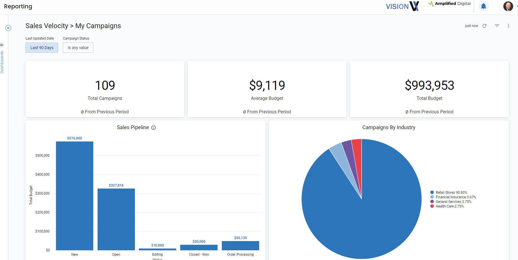 Average Budget: This metric allows sales reps to gauge the typical budget for campaigns they've successfully closed. Understanding budget trends can help sales reps tailor their offerings to client needs.