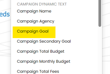 Specifically, you want to dynamically feature the client's name and the overarching goal of the campaign within the text elements.