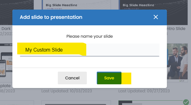 Give your creation a distinctive identity by inputting a custom slide name. This step not only adds a personal touch but also facilitates easy identification and retrieval within the platform.