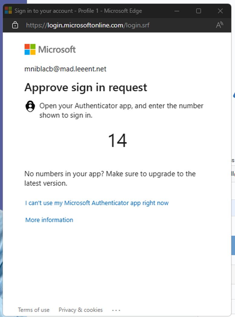 Again, you must now enter your work emaill address again in the pop-up window to begin the authenication process