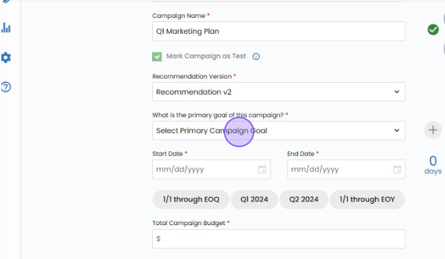 Begin by establishing a clear and defined primary goal for your campaign. This is the focal point that will steer the overall functionality of the recommendation engine. The chosen primary goal will play a pivotal role in shaping how your campaign is executed, fulfilled, and optimized for the best possible results. It's crucial to align this primary goal with the client's optimal outcome and overarching marketing objectives.