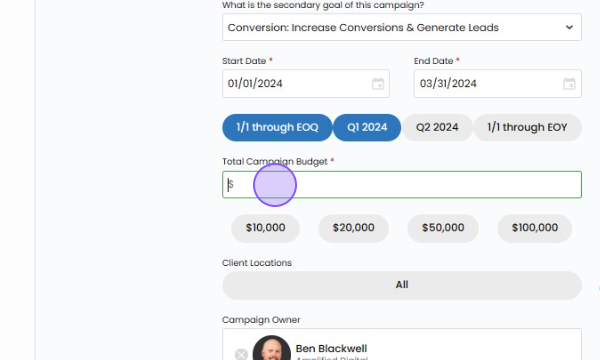 Diving into the realm of campaign budgeting is a critical step in crafting a targeted and effective marketing strategy within Vision VX. The budget you set plays a pivotal role in guiding the platform to recommend the most suitable products and services, aligning seamlessly with your client's overarching goals. Here's a comprehensive guide on how to adeptly set campaign budgets: