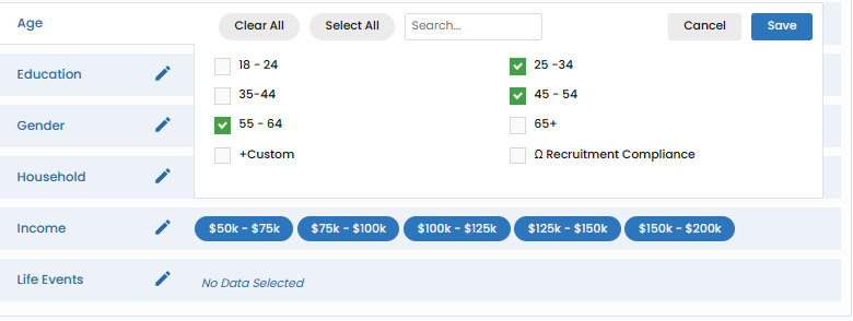 Effortlessly zero in on your desired audience by age. Click the pen tool next to edit, and then click save when done.